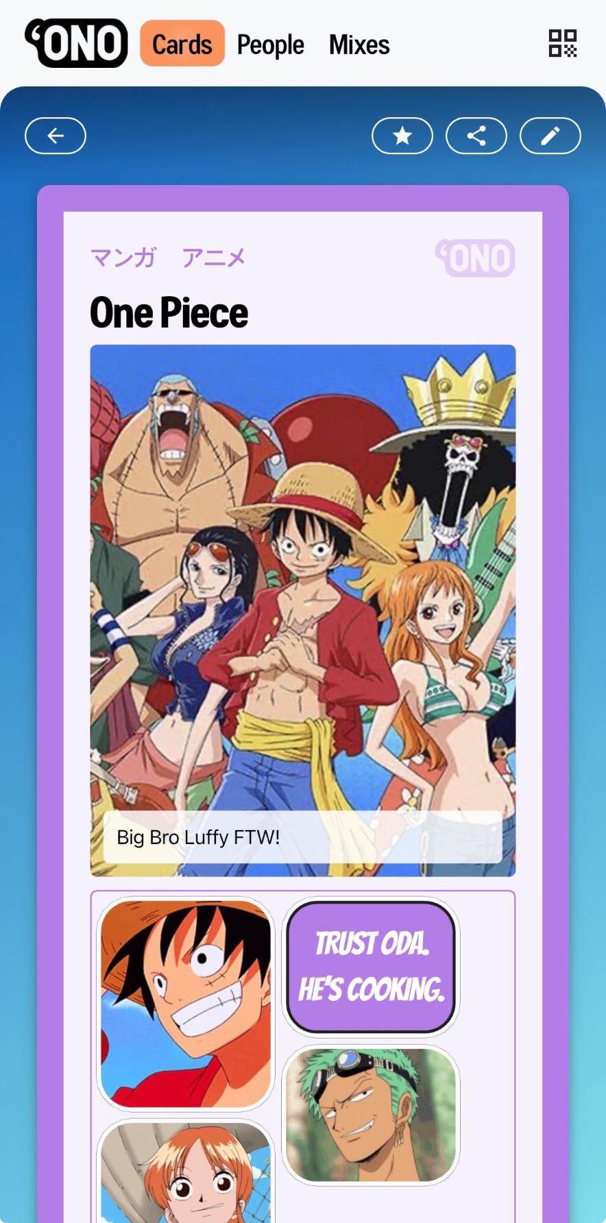 Create cards around anything you love — a first edition you hunted down, your favorite anime, a cool cafe. Add text, images, and links.